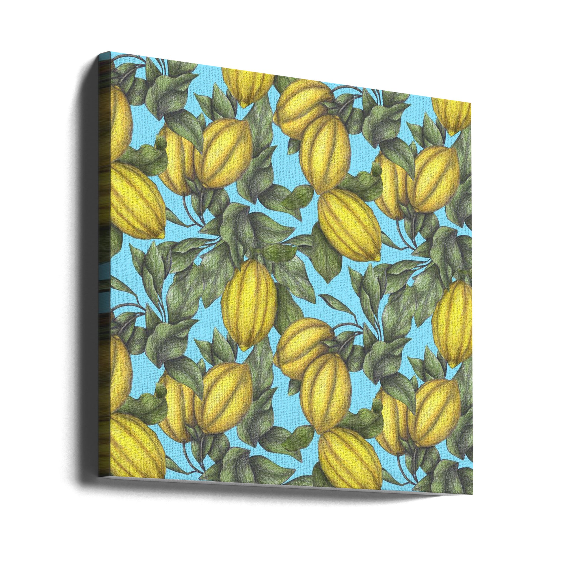 Muster einer gelben Zitrone mit grünen Blättern | Leinwand