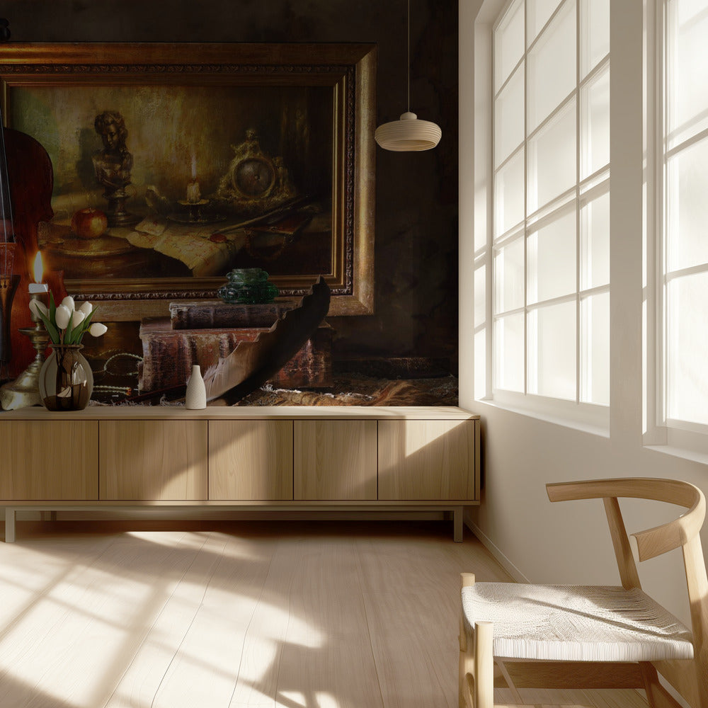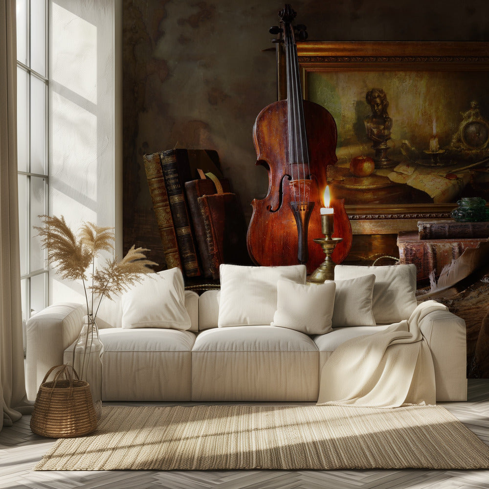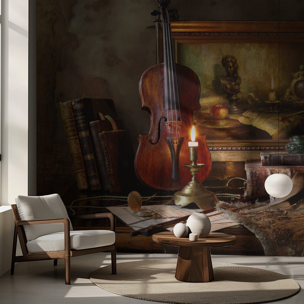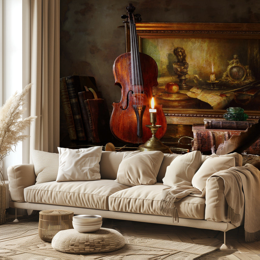 Bodegón con violín y cuadro | Papel Pintado Fotográfico