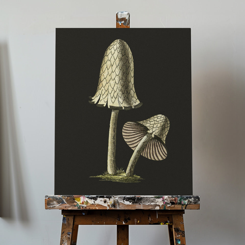 Hongo comestible con tapa de tinta vintage, fondo negro | Impresiones en Lienzo