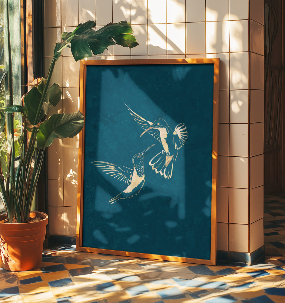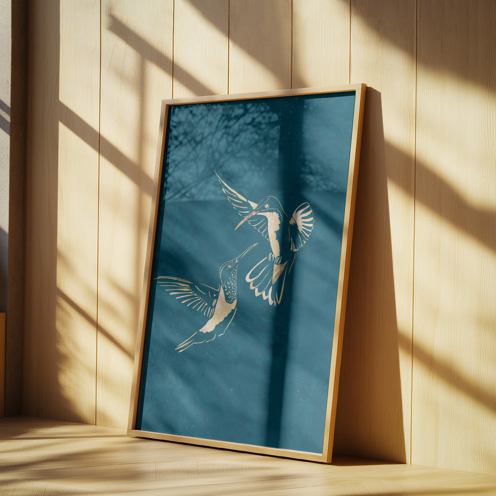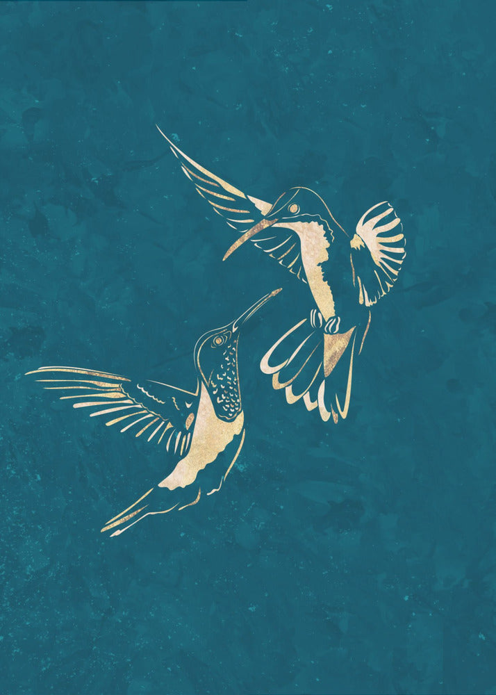 Gold Hummingbird Line art Silhouettes 3 by Sarah Manovski