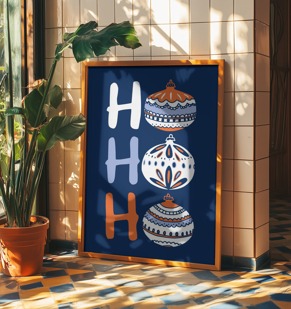 HoHoHo Fröhliche kleine Weihnachtsillustration blau | Poster
