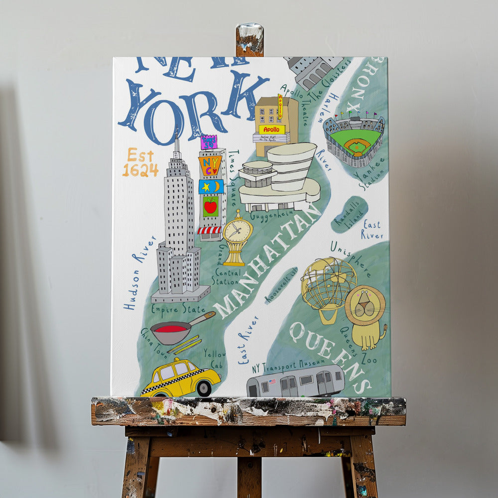 Kuvitettu New Yorkin kartta taiteilija Carla Dalyn toimesta | Canvastaulut
