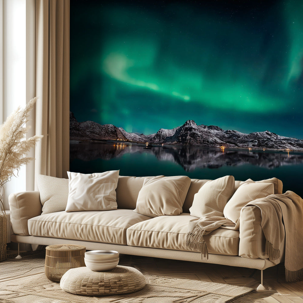 Lofoottien revontulien heijastus | Valokuvatapetit