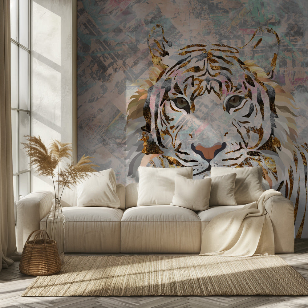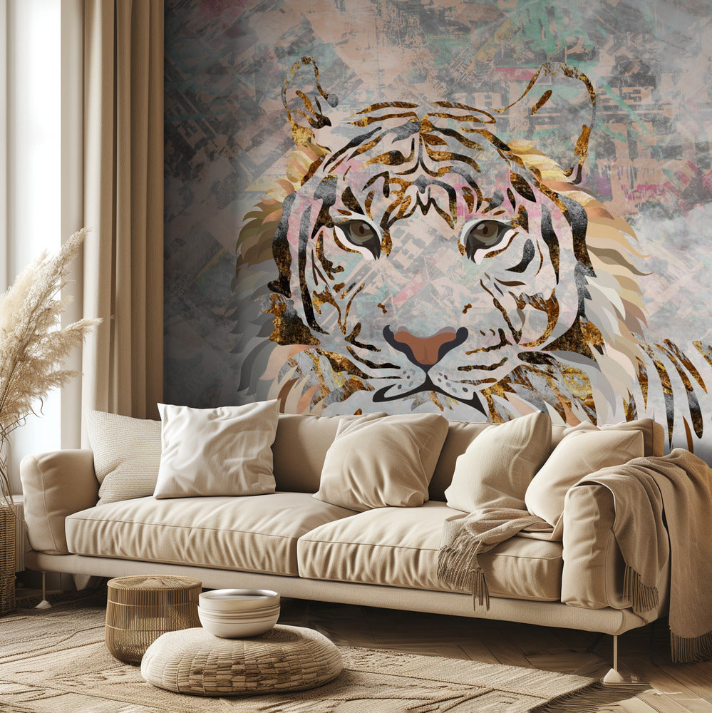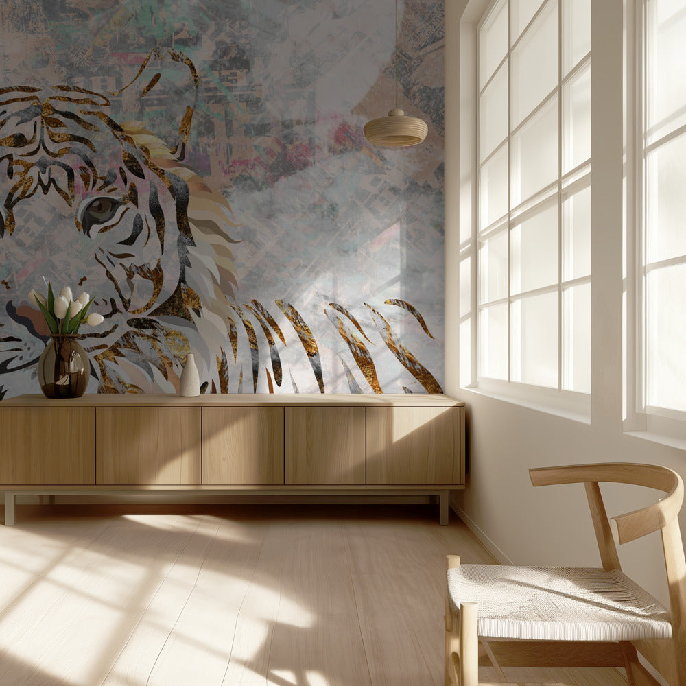 Tiikeri-kuvioinen kultainen seinämaalaus | Valokuvatapetit