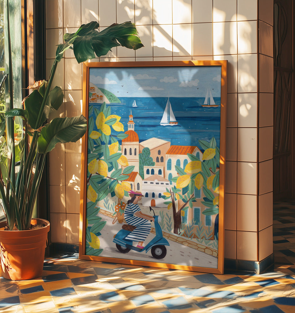 Matkustaa Julisteet - Taidevedokset nainen Amalfin rannikolla, Italiassa | Julisteet - Taidevedokset