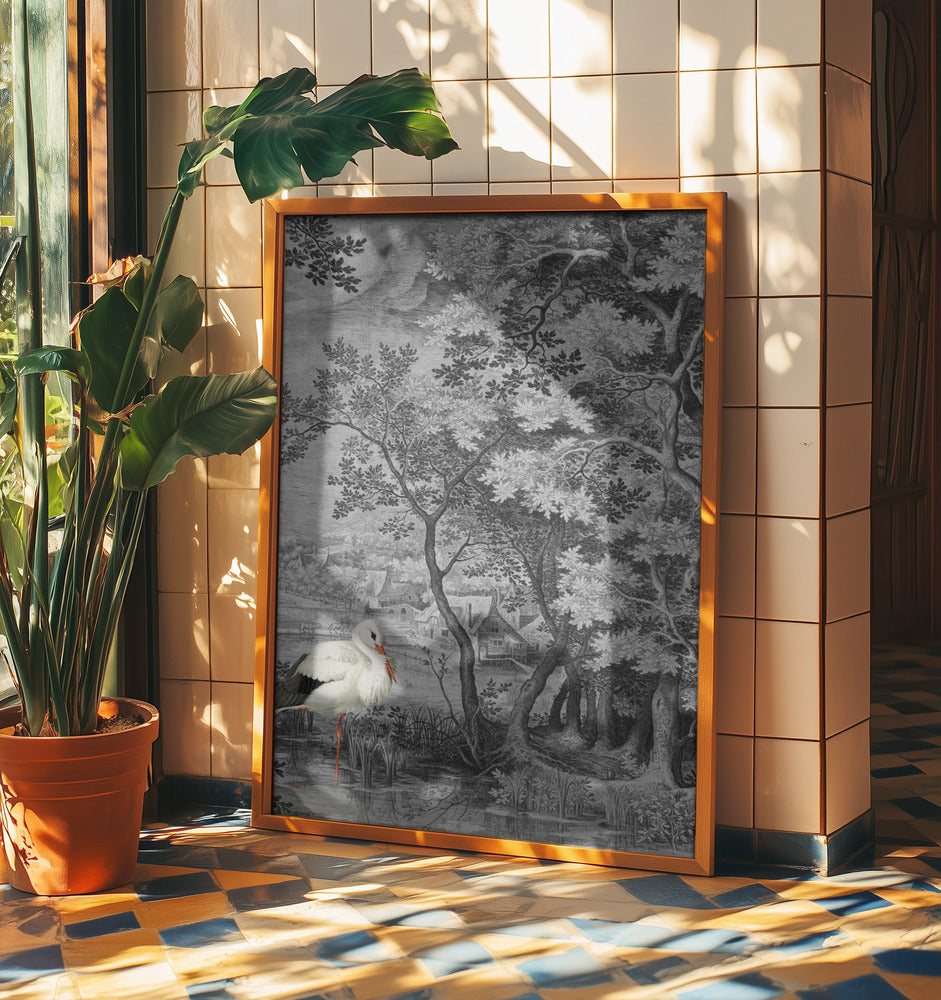 Vintage-Landschaft mit Storch von Marja van den Hurk