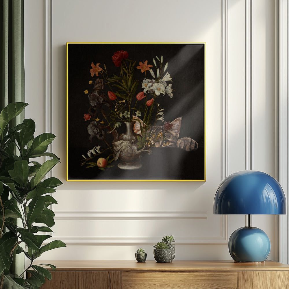Vintage Vase mit leuchtenden Blumen von Marja van den Hurk