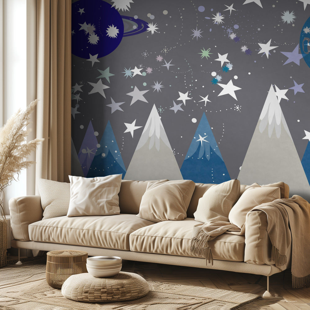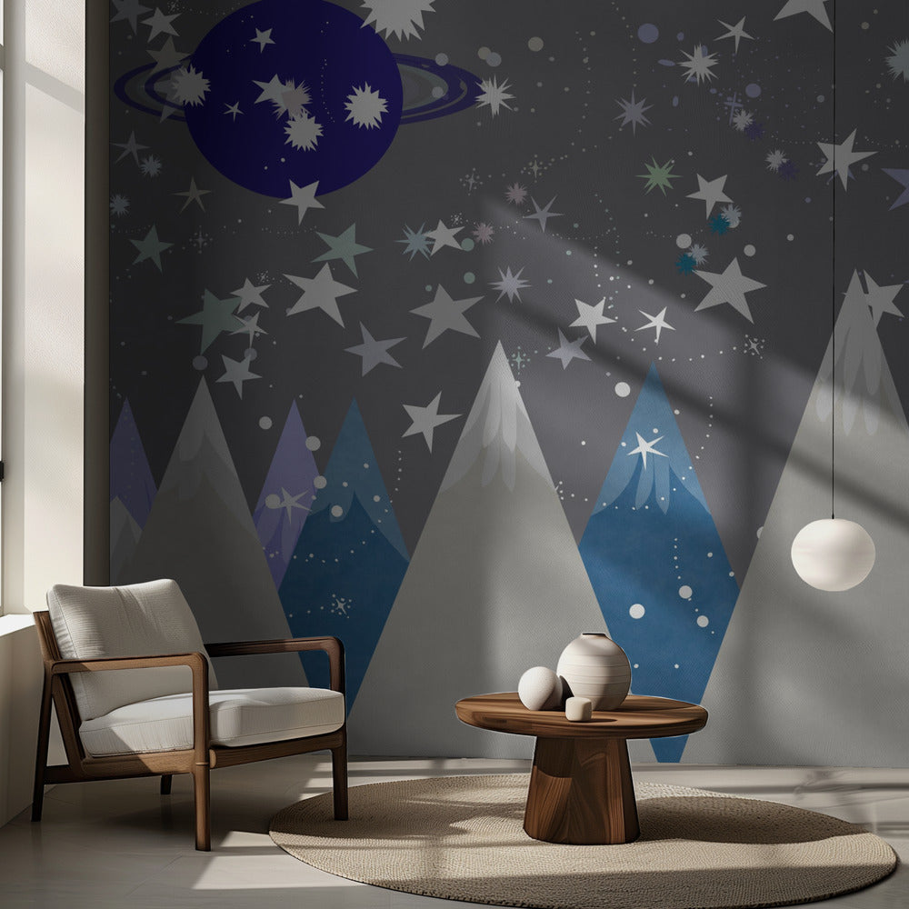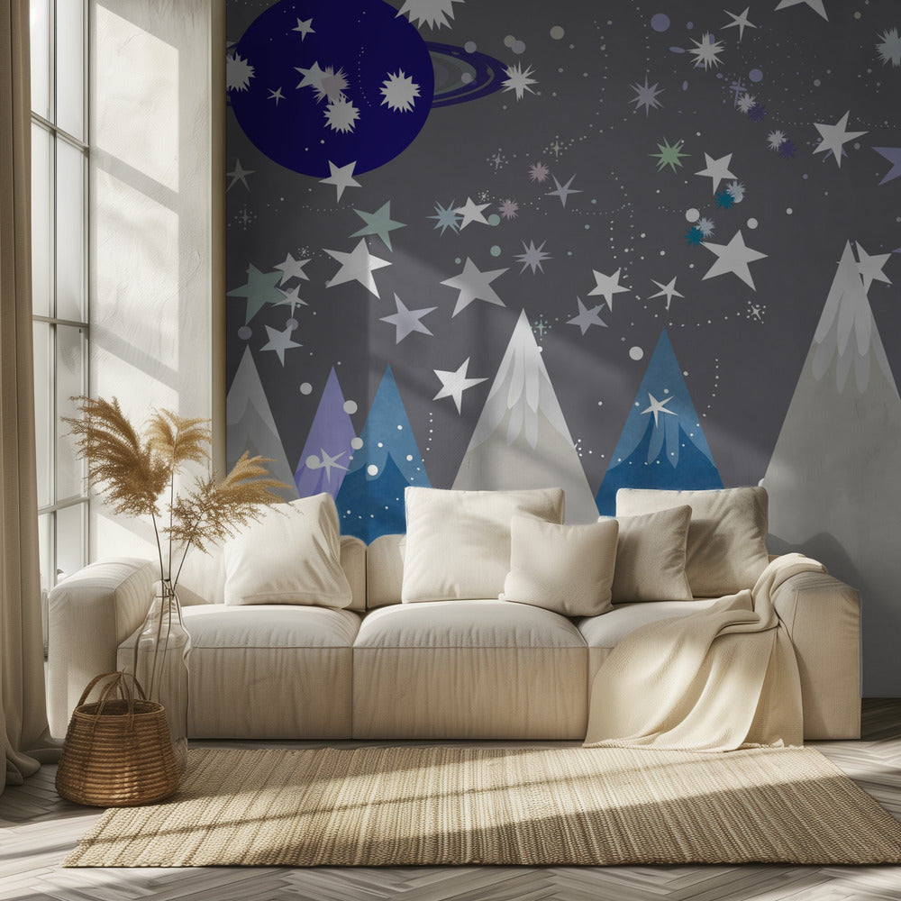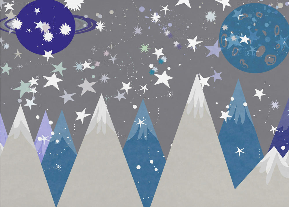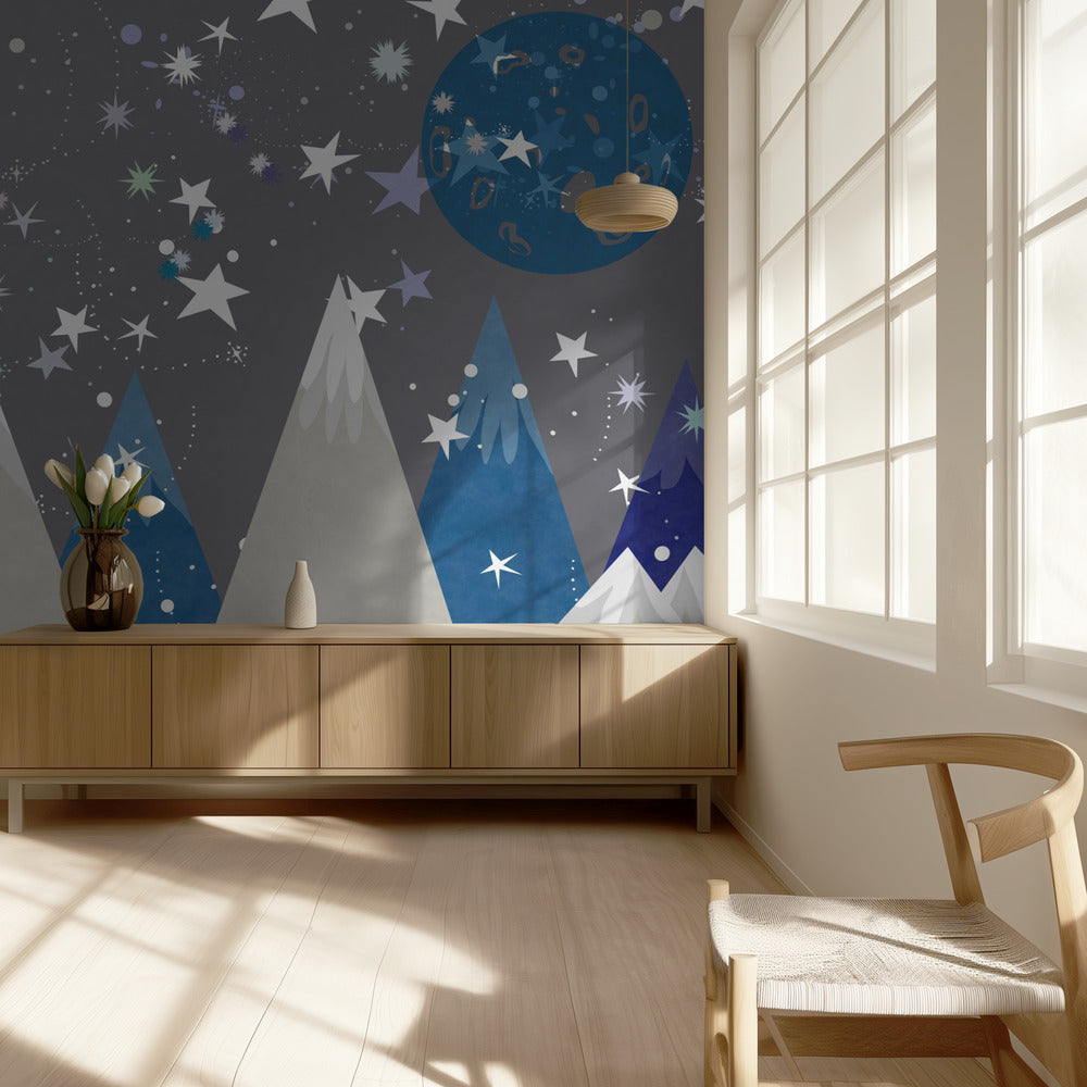 Talvimaisemia: Yötaivas Keskiyönsininen Lastenhuoneen seinämaalaus | Valokuvatapetit
