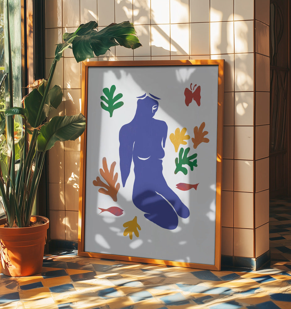 Blue Silhouette of a Kneeling Figure by Little Dean