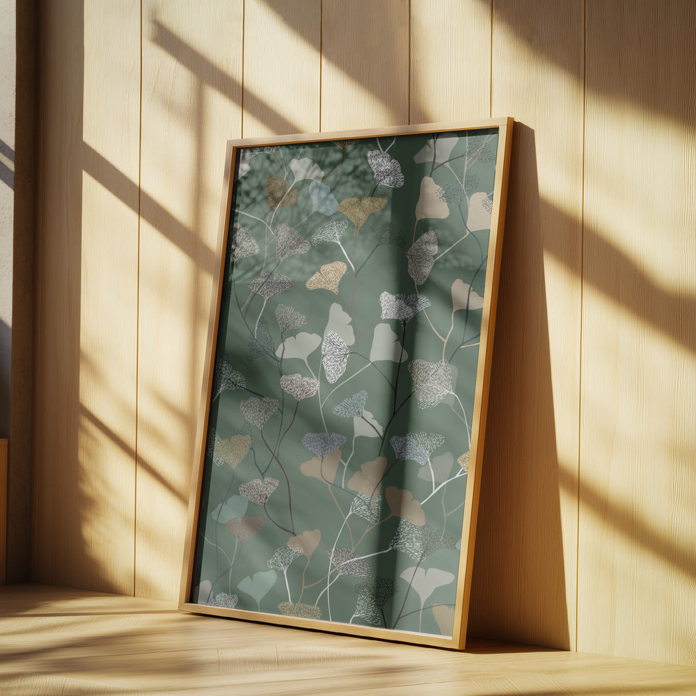 Ginkgo Leaves moss green pattern by Annick