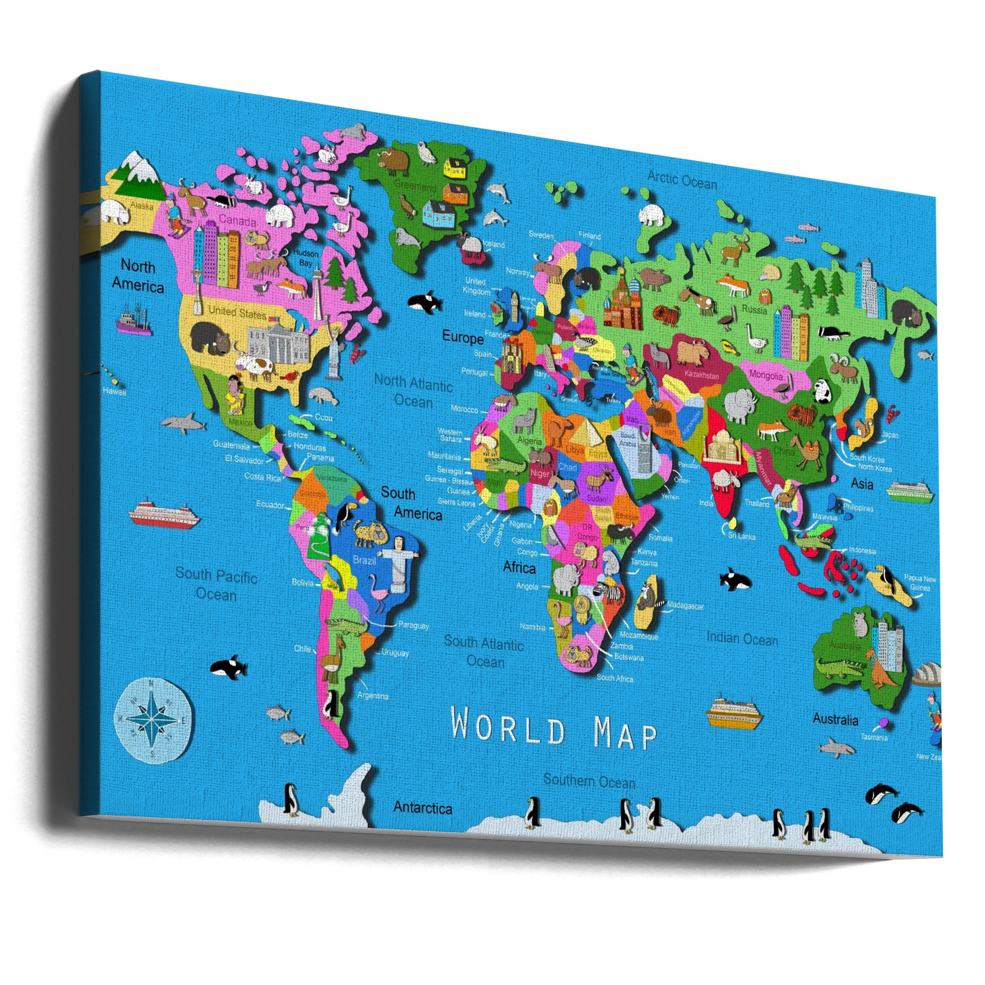 Ilustrowana mapa świata z zaznaczonymi krajami i kontynentami autorstwa Carli Daly | Wydruki na łótnie