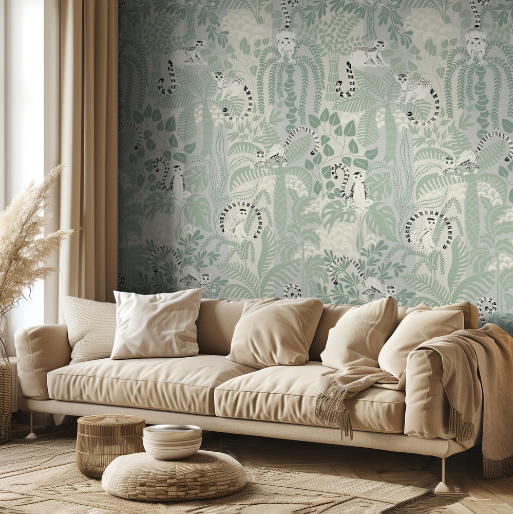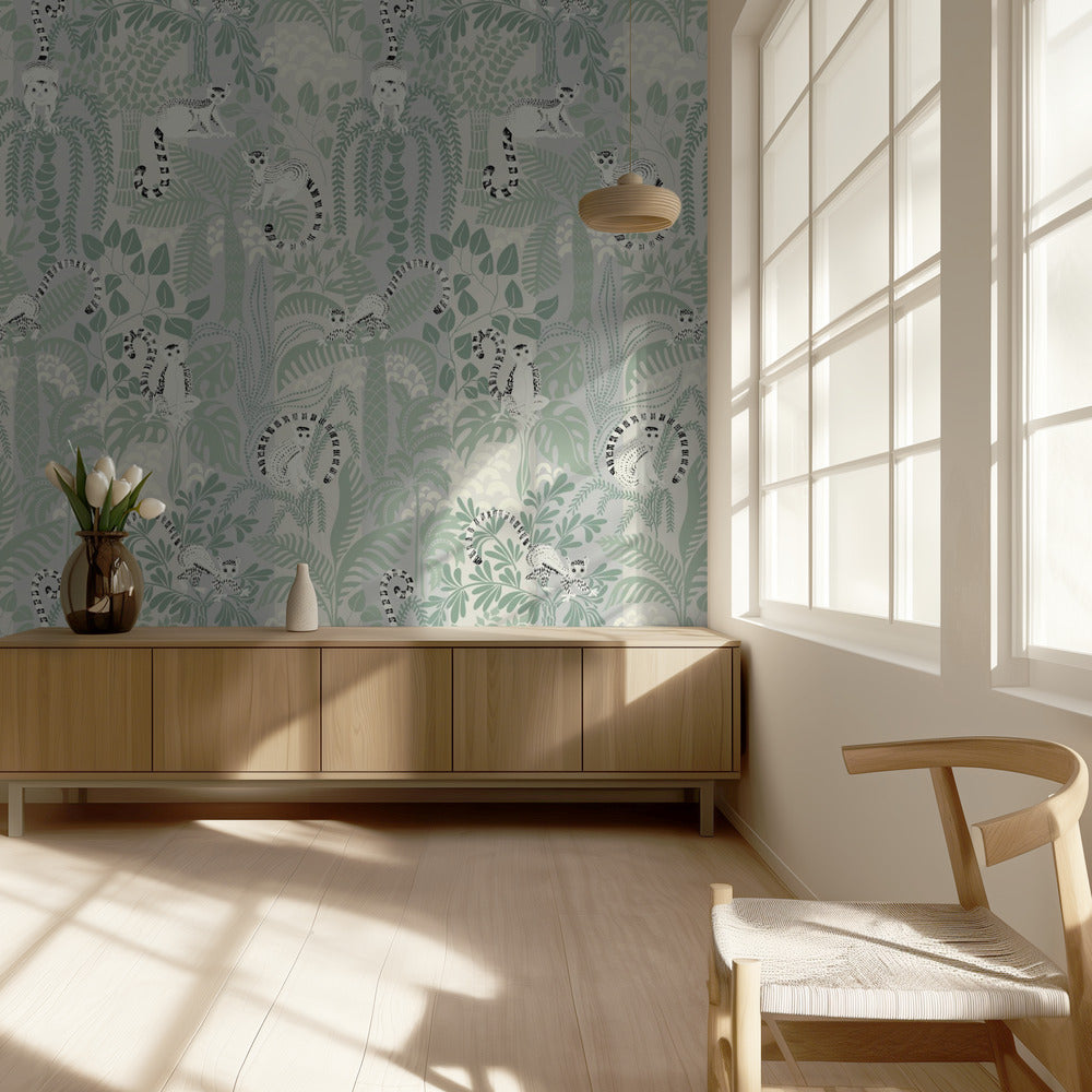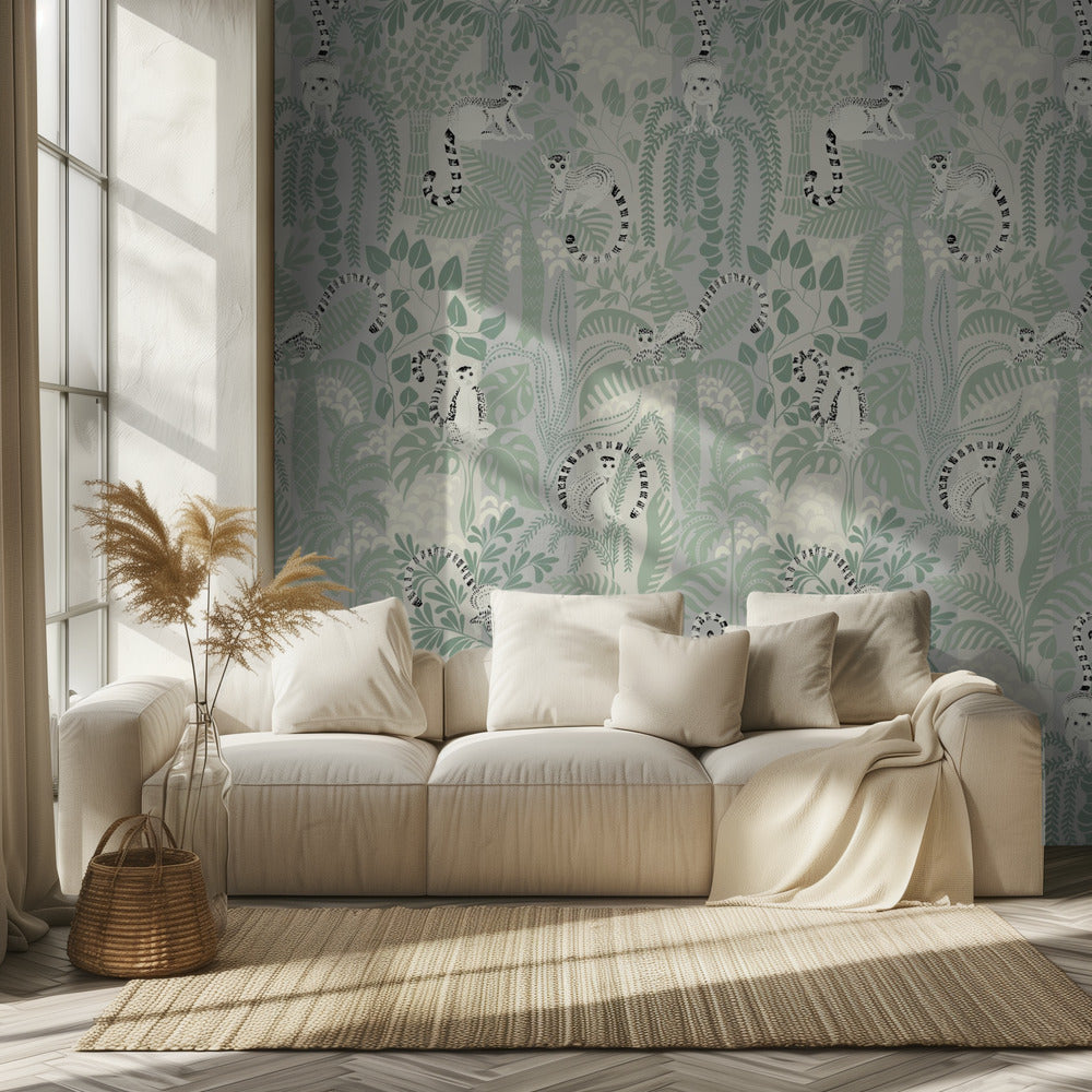 Przygoda w dżungli, miękki wzór w kolorze szałwii | Fototapeta