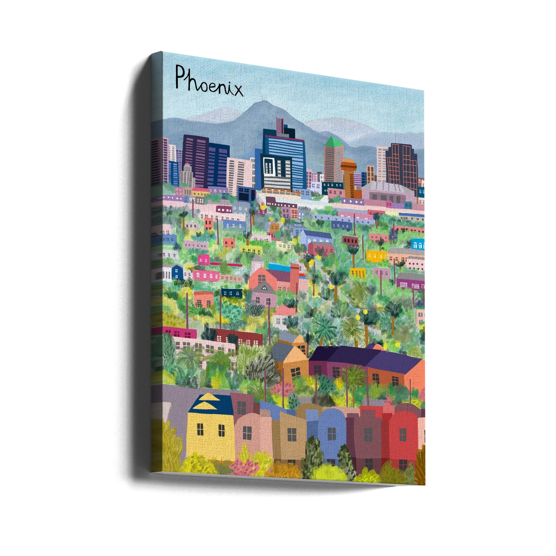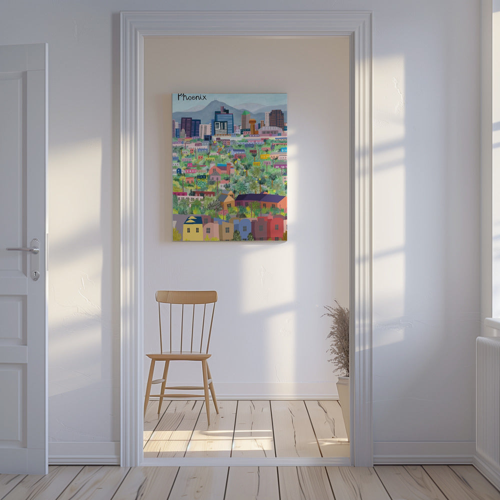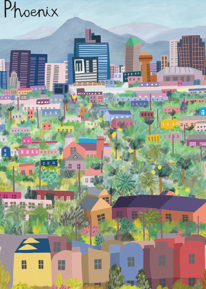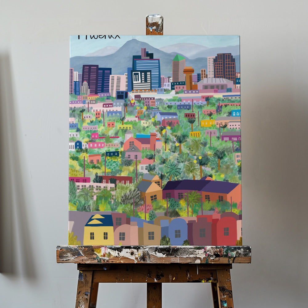 Widok na Phoenix w Arizonie zilustrowany przez artystkę Carlę Daly | Wydruki na łótnie