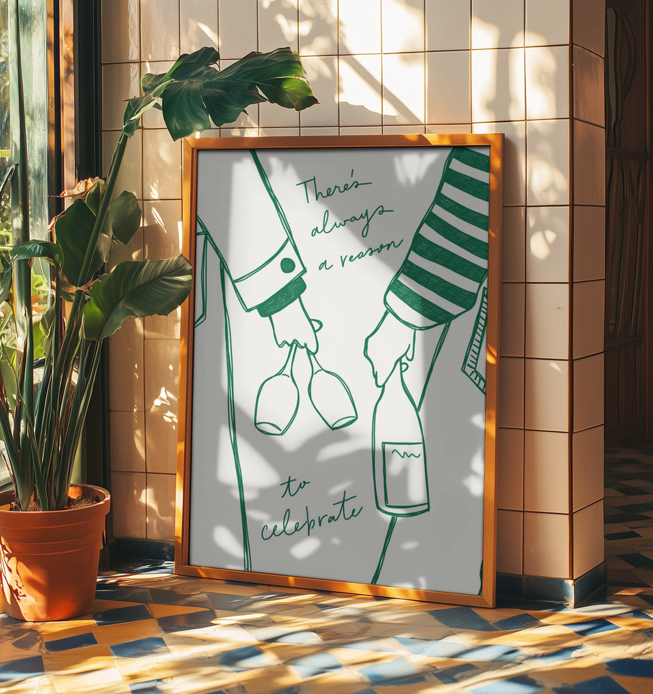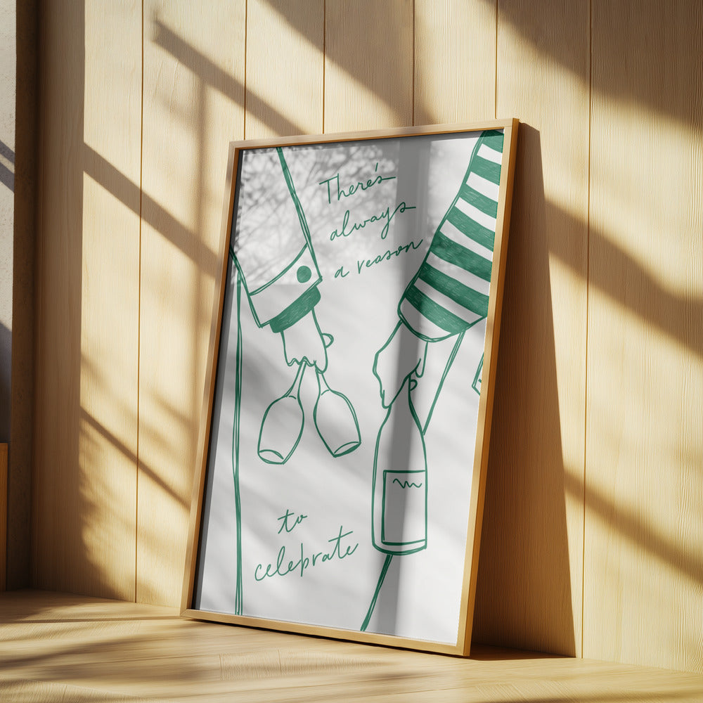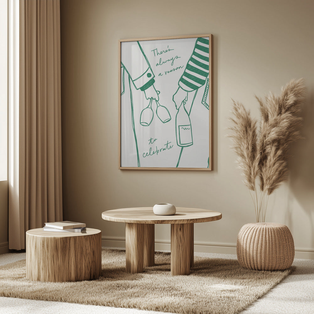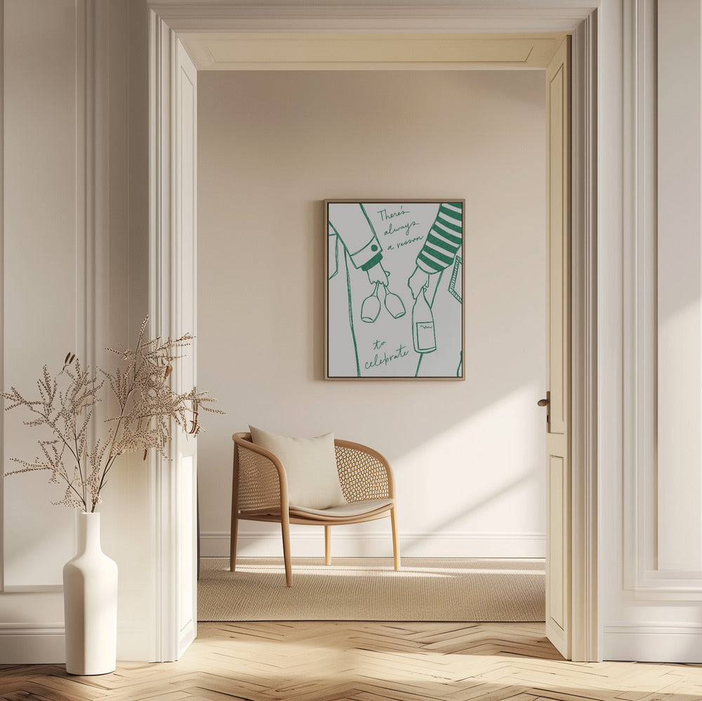 Frau hält Weinflasche und Weinglas (Grün) - Wine Vin Femme Vert | Poster