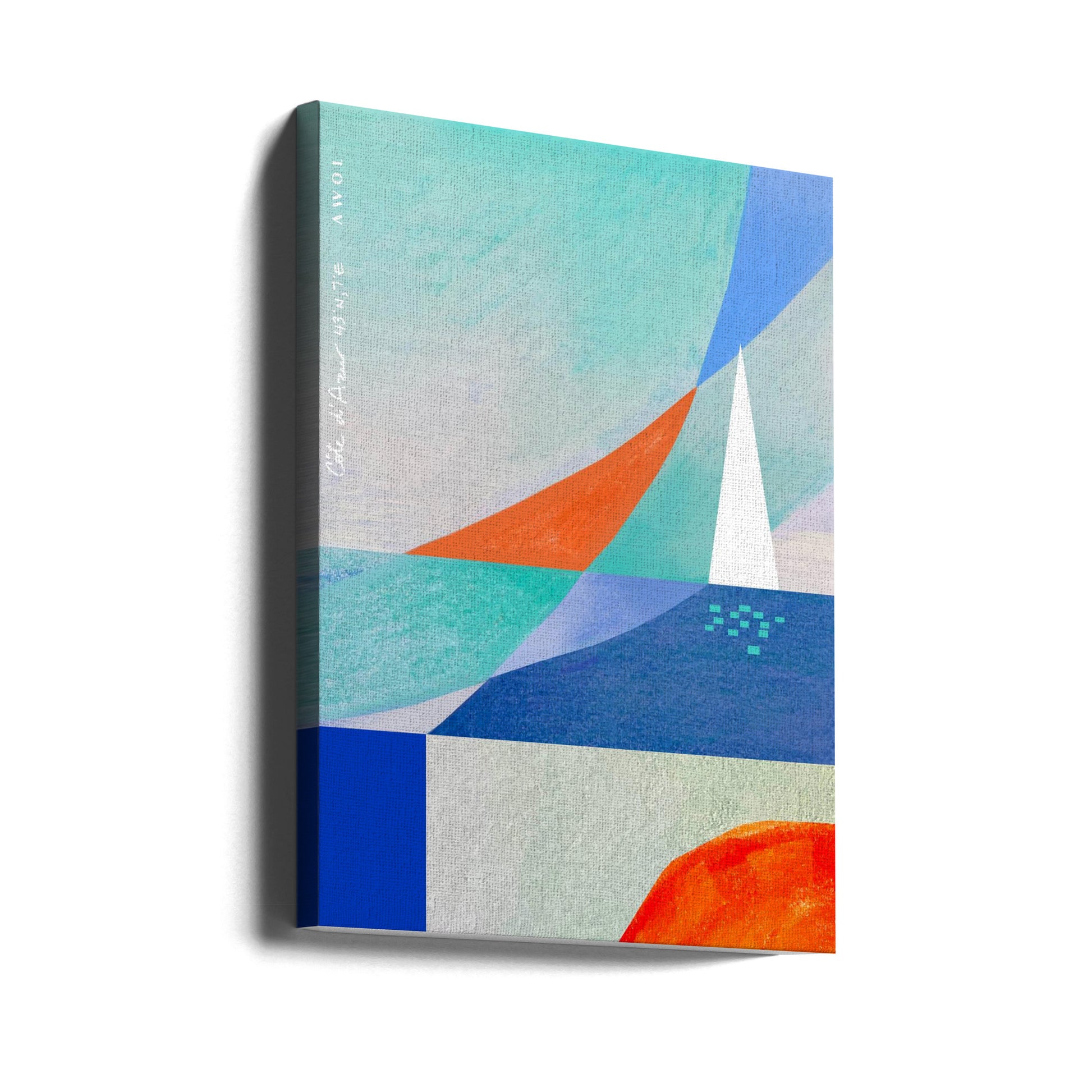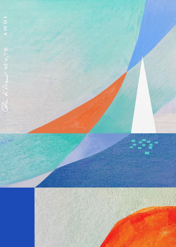 Abstrakte Meereslandschaft mit weißem Segelboot am Mittelmeer, Wandkunst an der französischen Riviera von Awol Art Alex