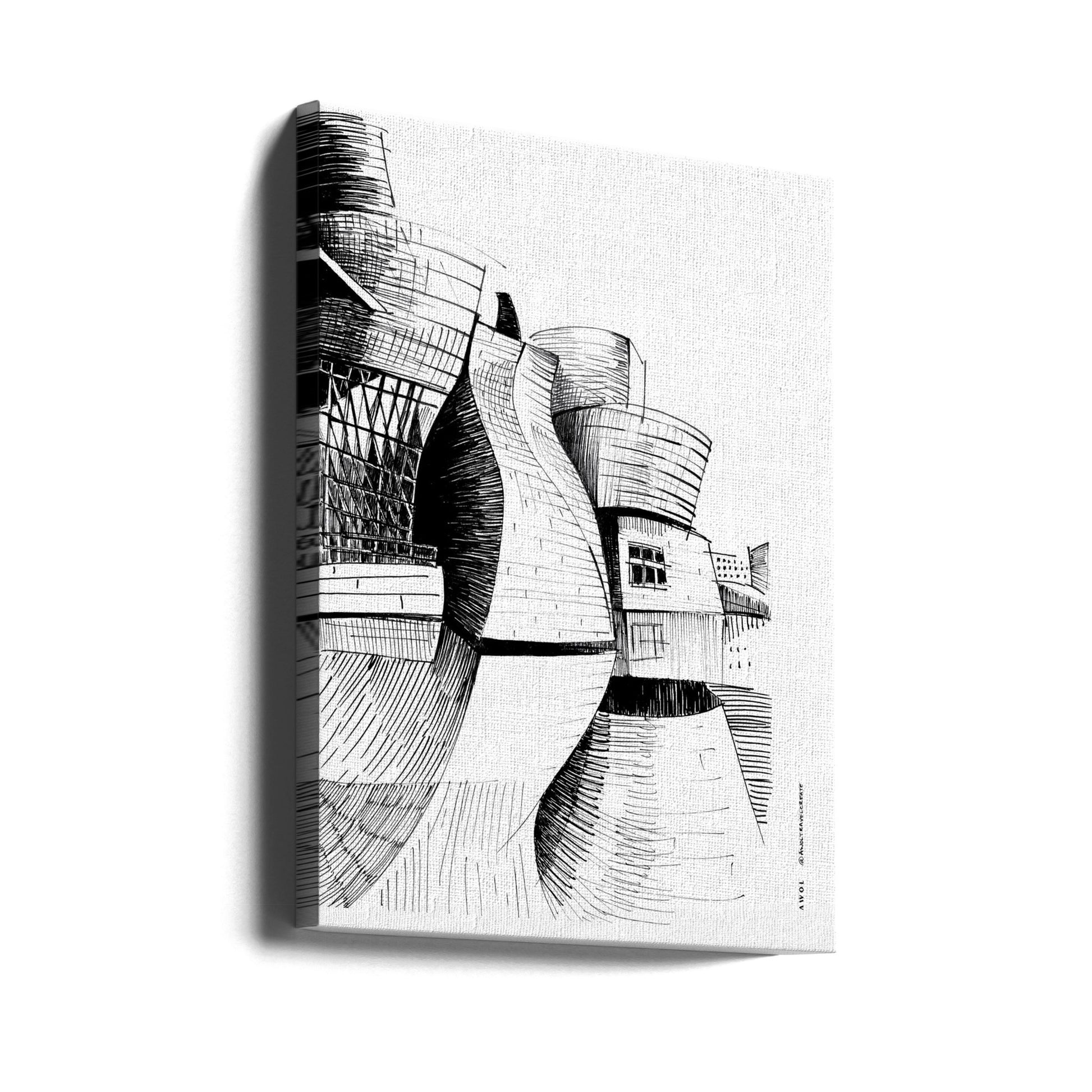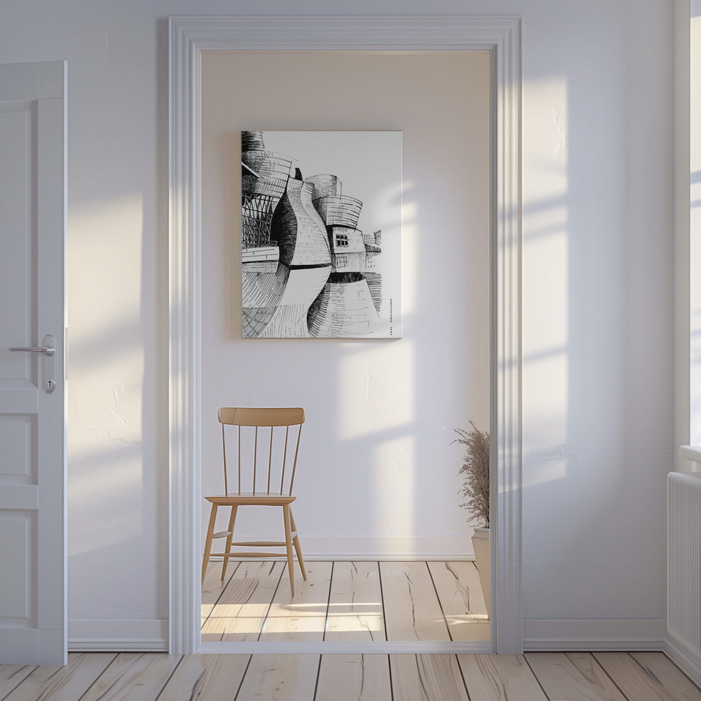 Guggenheim-Gebäude in Bilbao, Zeichnung moderner Architektur | Leinwand-Bilder