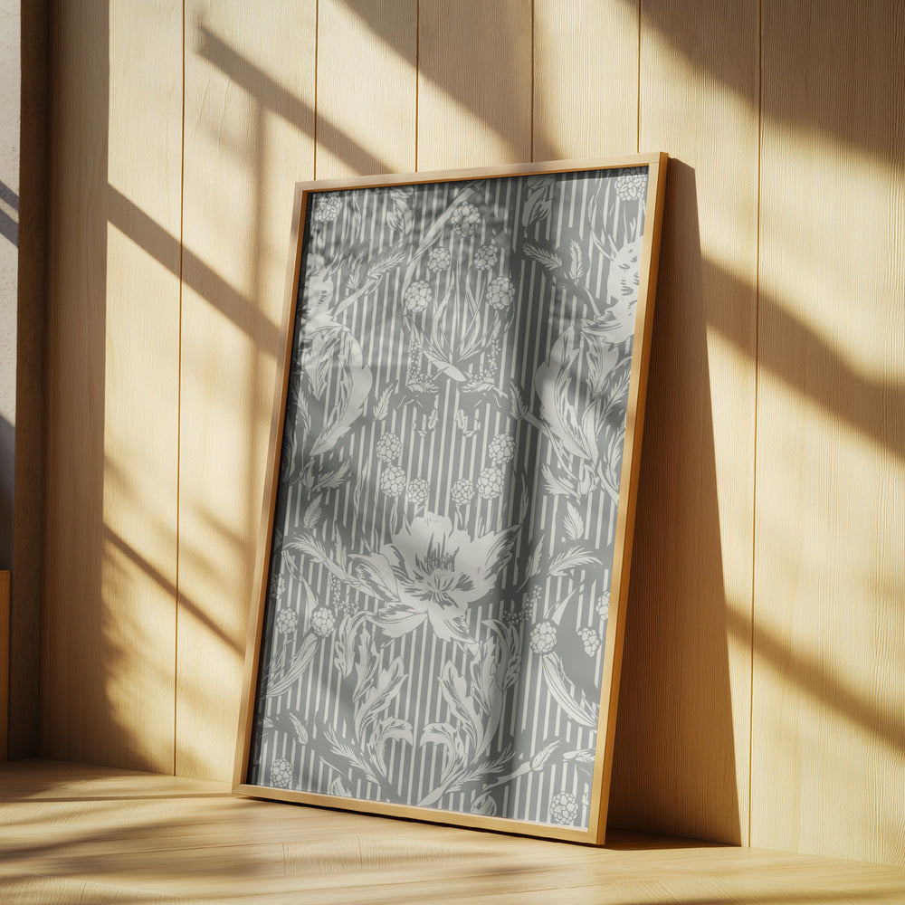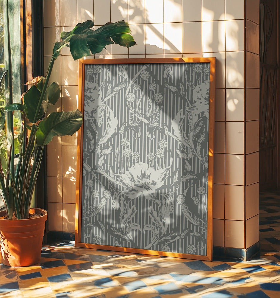Floral Heritage Morris monochrome stripes grey pattern | Poster