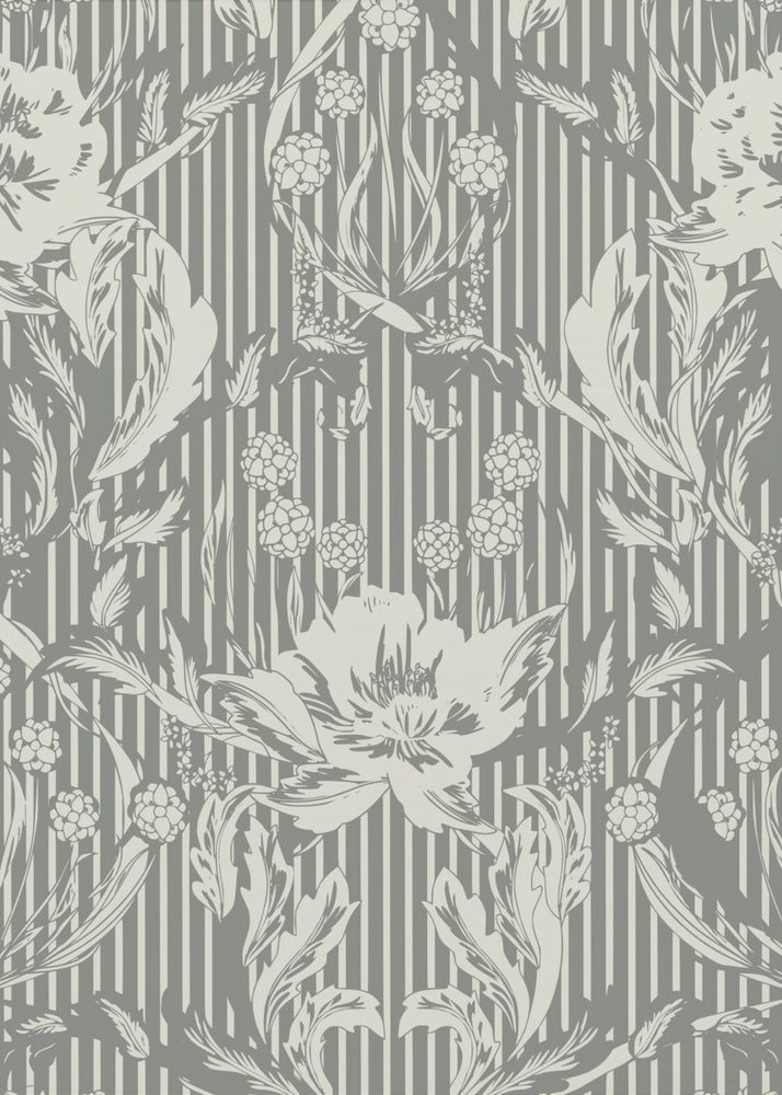 Floral Heritage Morris monochrome stripes grey pattern by Annick
