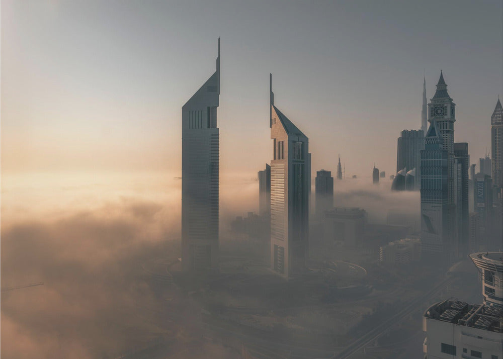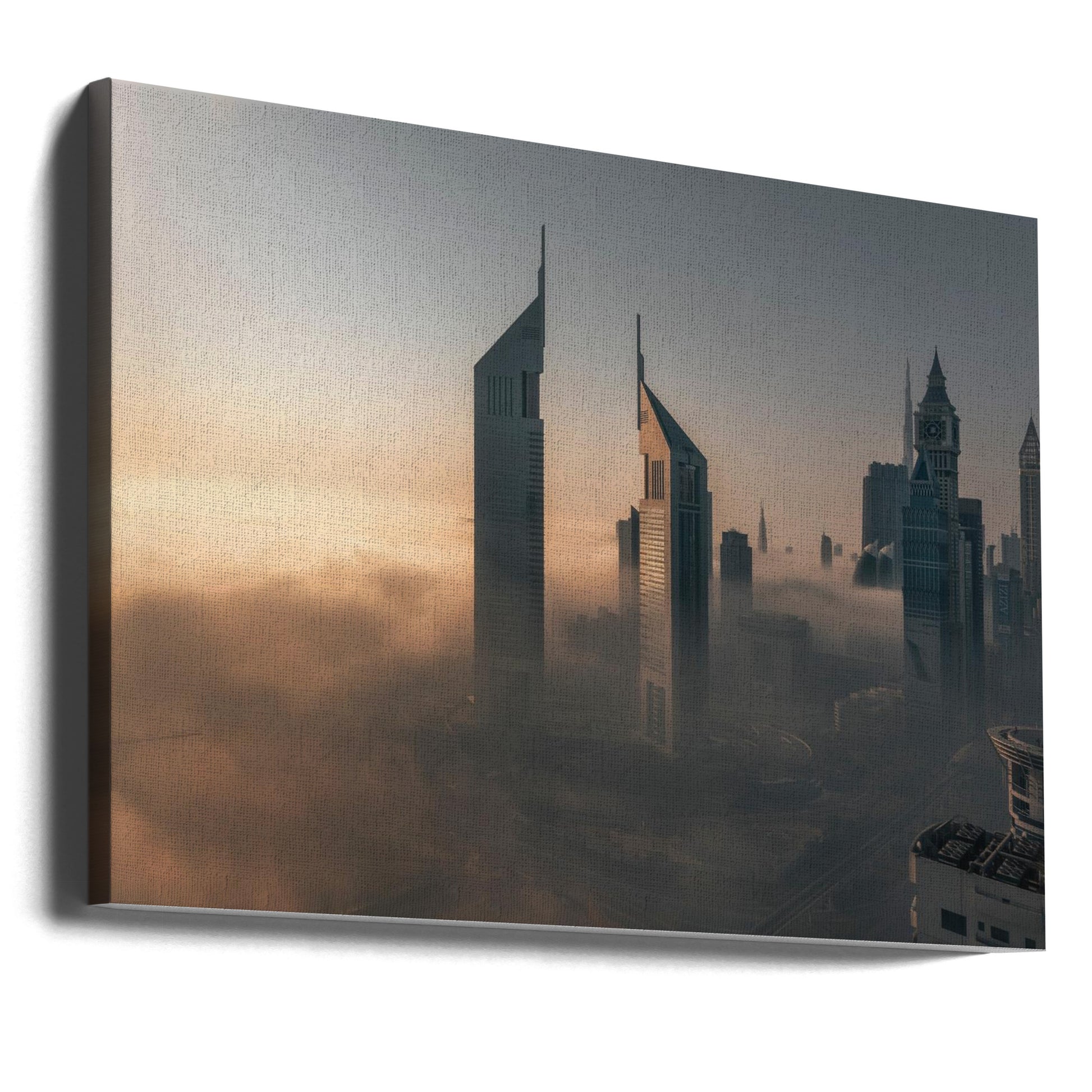 Nebelsperre über der Stadt aus Stahl | Leinwand-Bilder